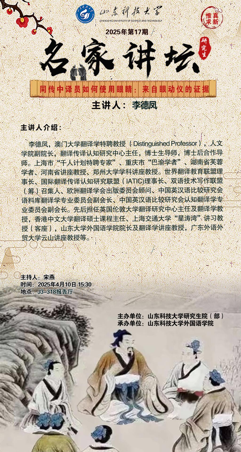 “名家讲坛”2025年第17期:同传中译员如何使用眼睛——来自眼动仪的证据 (总1022期)